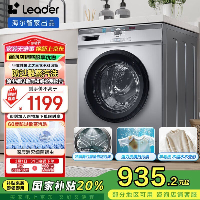 Leader滚筒洗衣机京东促销,原价1249元到手899元