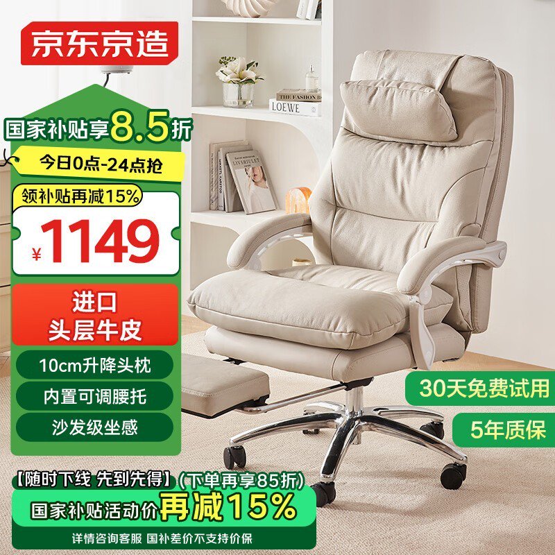 京东京造Z8老板椅奶咖白真皮款人体工学电脑椅超值优惠