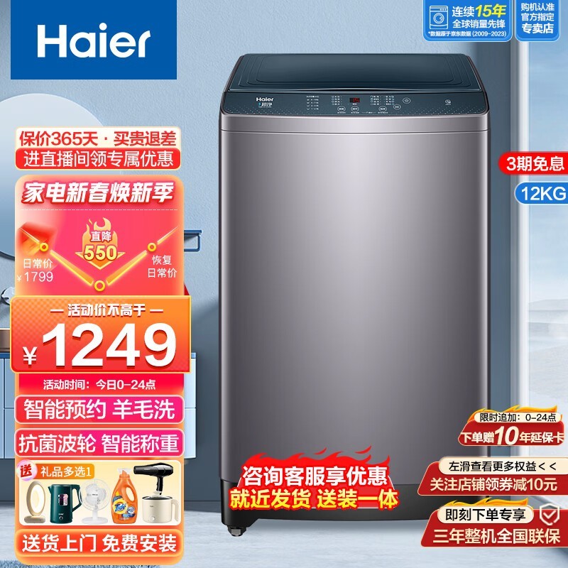 海尔12公斤波轮洗衣机 京东活动价1199元