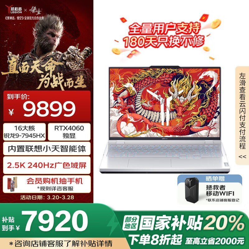 联想R9000P游戏本|R9-7945HX|RTX4060|16G|1TB|7871元