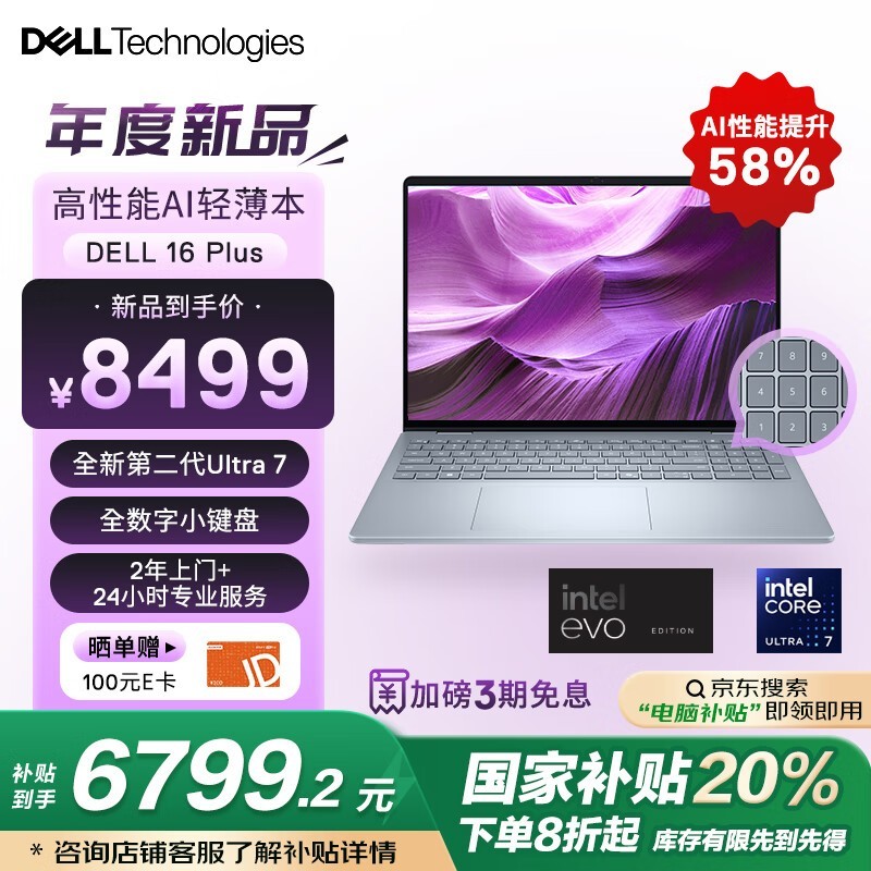 戴尔16Plus笔记本,第二代酷睿Ultra7处理器,到手价6665元