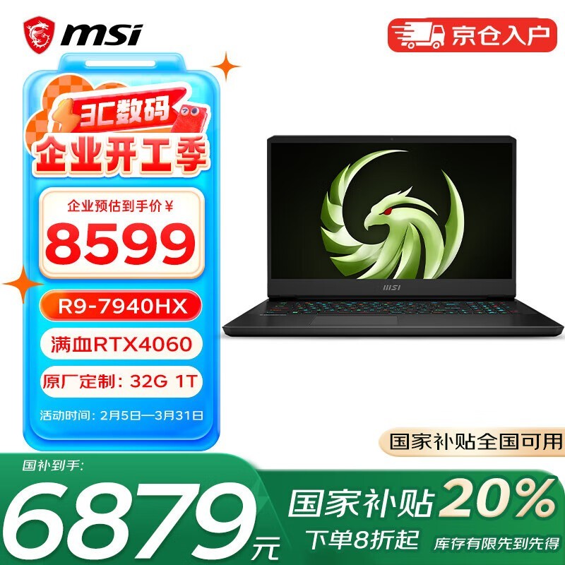 微星雷影17满血版R9本,京东优惠价6844元