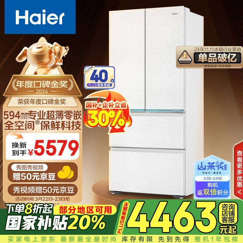 海尔485升冰箱超值优惠,到手价4057元