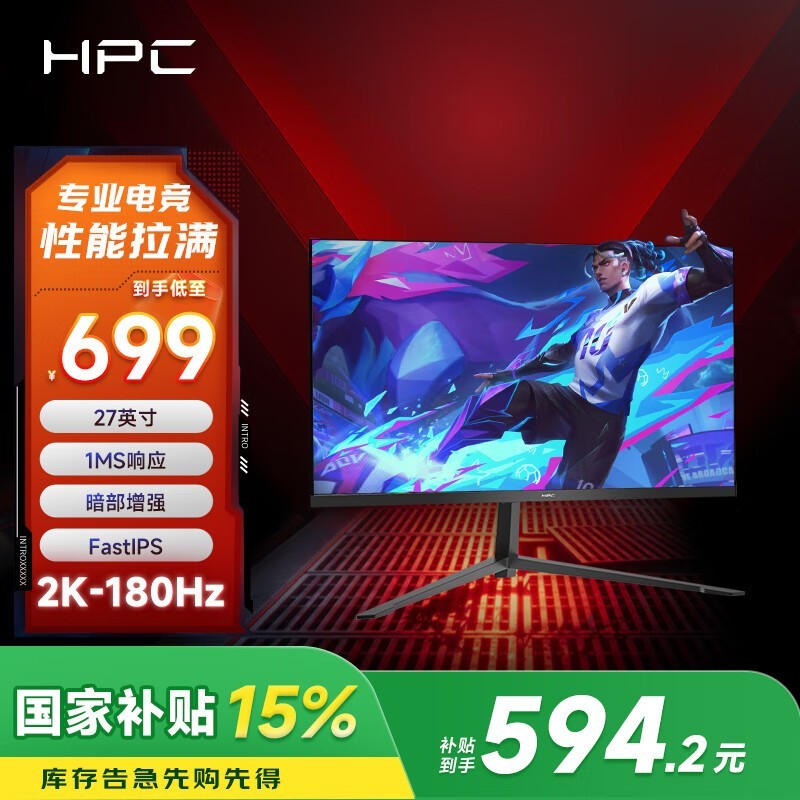 惠浦HPC HH27QPX 27英寸显示器促销,到手价594元