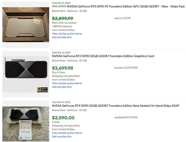 目前,eBay上最新卖出的RTX 5090公版价格大多在3500-4000美元之间,尽管价格有所下降,但与1999美元的官方建议零售价相比,仍高出75.14%,对于玩家来说,现阶段购买二手RTX 5090仍需谨慎,建议等待价格进一步回落。