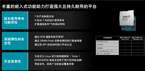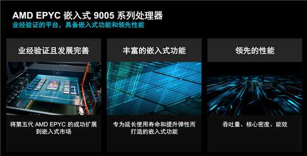 EPYC嵌入式9005系列在嵌入式方面的突出特性,可以分为三个方面: