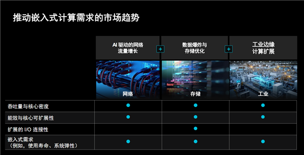 比如在工业应用中,尤其是工业边缘计算的爆炸式增长,加上工业环境下的数据实时处理,特别是大量传感器产生的海量数据的本地处理、实时决策,都对计算的性能和能效提出来更高的要求。