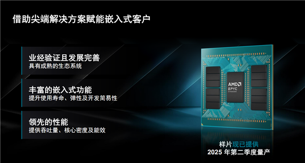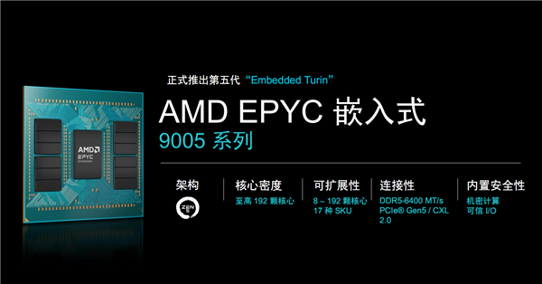 AMD EPYC嵌入式9005系列处理器现已出样提供给客户,将在2025年二季度内量产并供货。