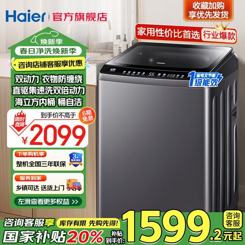 海尔Haier波轮洗衣机全自动双动力设计10公斤大容量