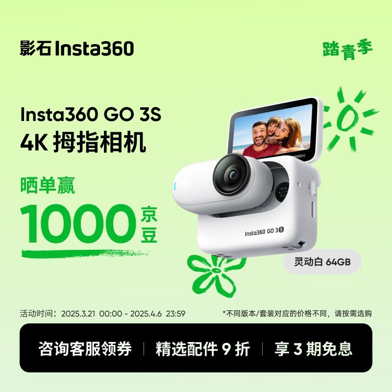 Insta360 GO 3S拇指运动相机灵动白64G标准套装