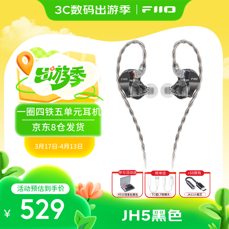 FiiO JH5入耳式耳机,享满减优惠到手仅489元