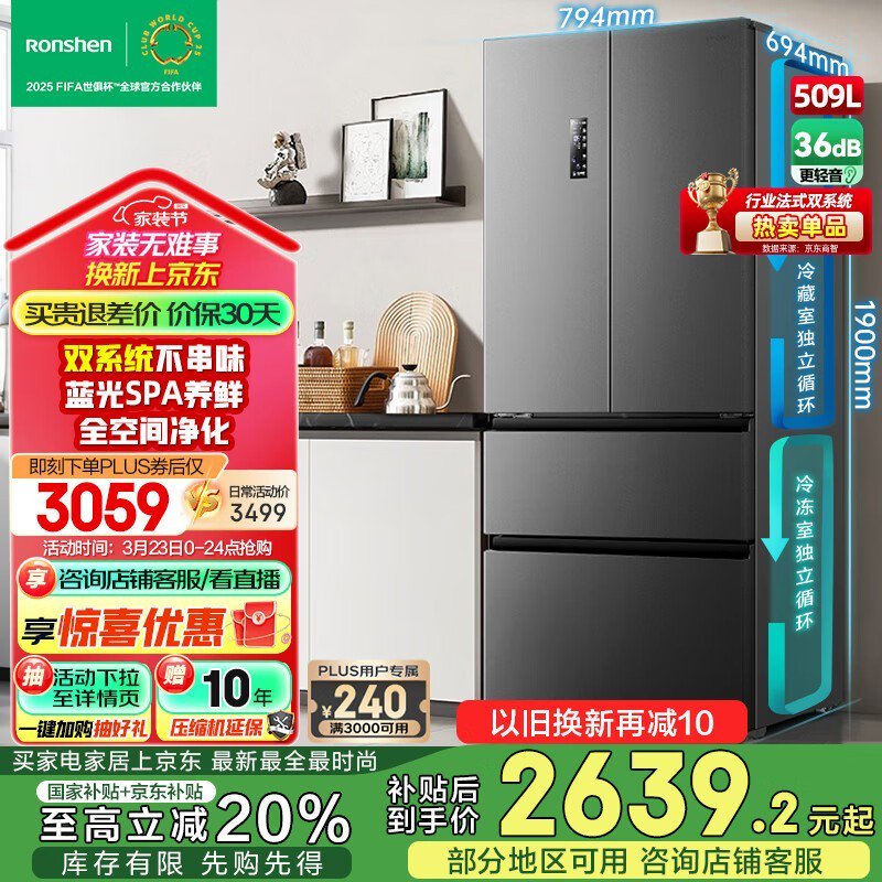 容声离子净味系列多门冰箱LB050900101J京东特惠至2288元