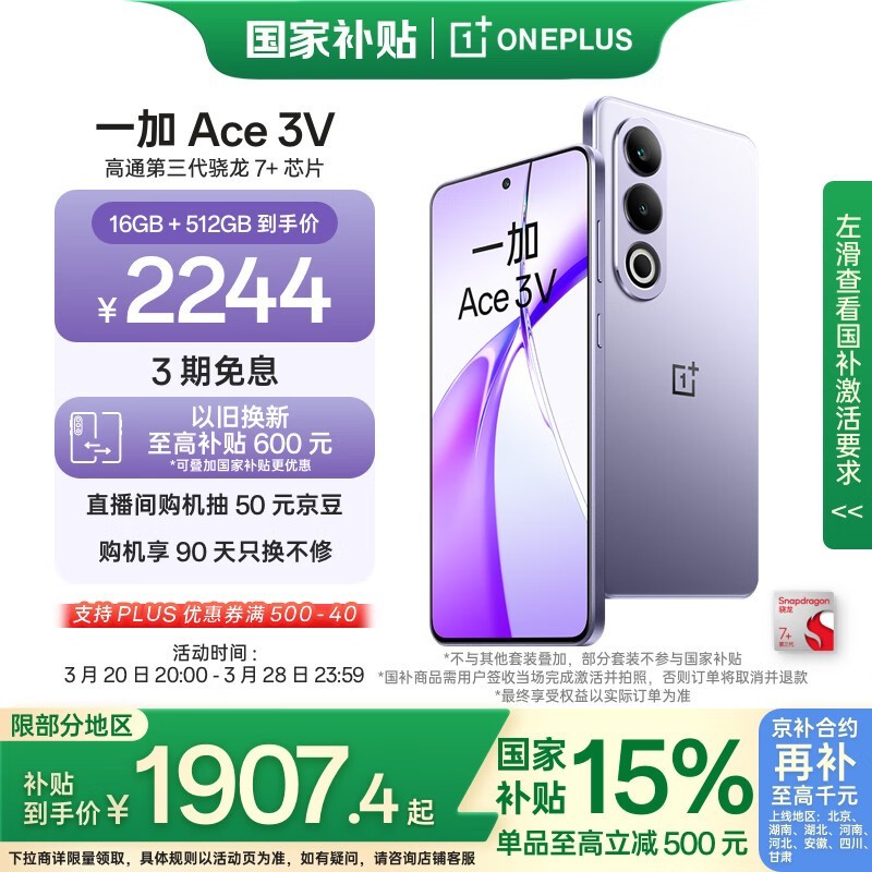 一加Ace 3V手机幻紫银配色16GB+512GB版超值优惠