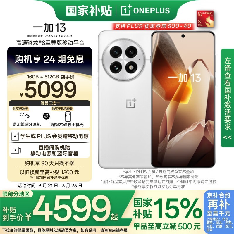 一加OnePlus 13旗舰手机促销优惠低至4278元