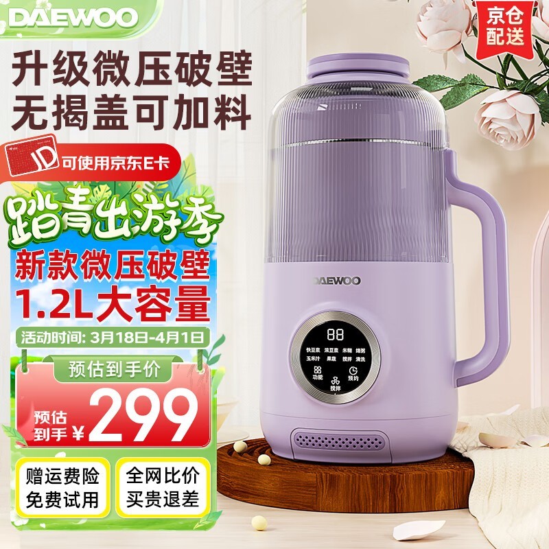 大宇破壁机迷你全自动多功能豆浆机京东活动到手价299元