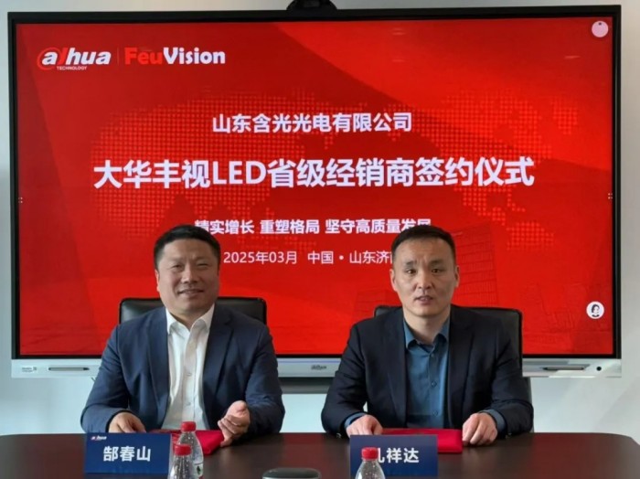 3月20日,丰视科技2025年山东区域省级经销商签约仪式在大华股份山东业务中心隆重举行。此次签约仪式以“精实增长、重塑格局、坚守高质量发展”为主题,山东含光光电有限公司总经理孔祥达以及大华股份国内营销中心副总裁、山东业务中心总经理郜春山、国内营销中心山东中小企业部总监王兴斌、国内营销中心中小企业业务部专项经销总监陈思贤、浙江丰视科技销售总监张光莹等领导出席了签约仪式。