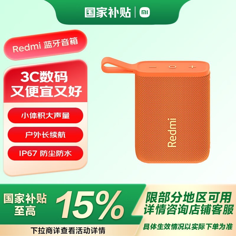 红米蓝牙音箱时尚橙色设计仅75.23元