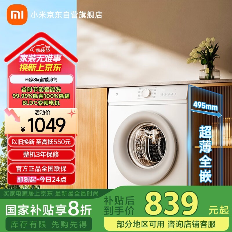 米家MIJIA滚筒洗衣机XQG80MJ110促销到手743元