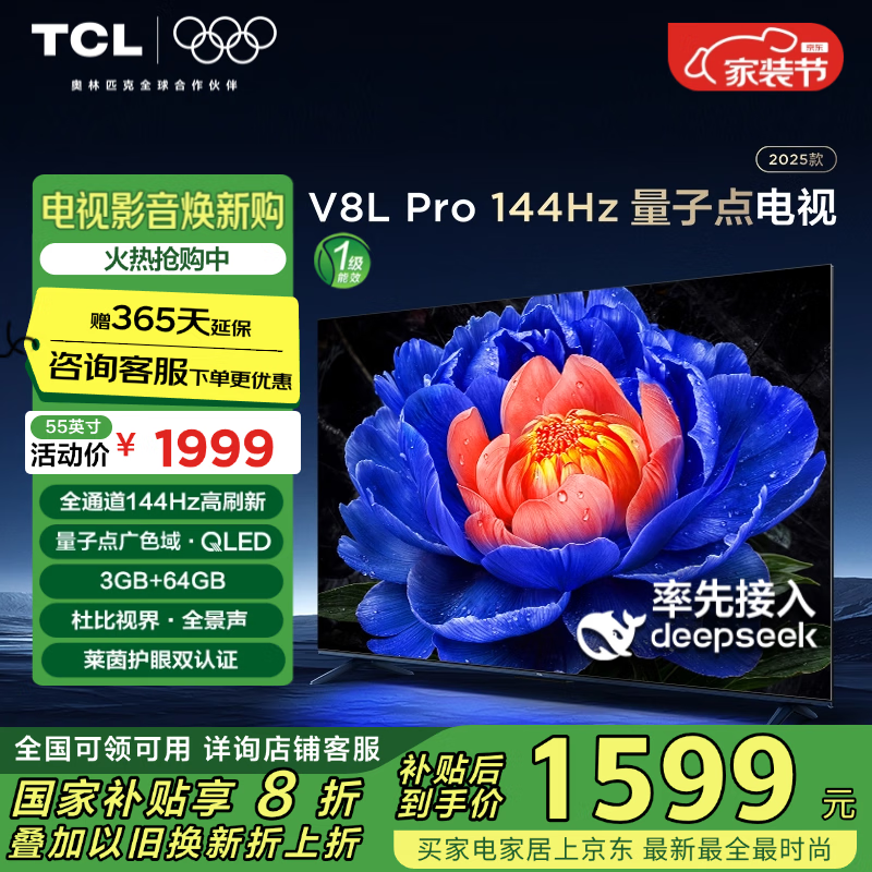 TCL 55V8L Pro液晶电视4K超高清京东特惠1433元