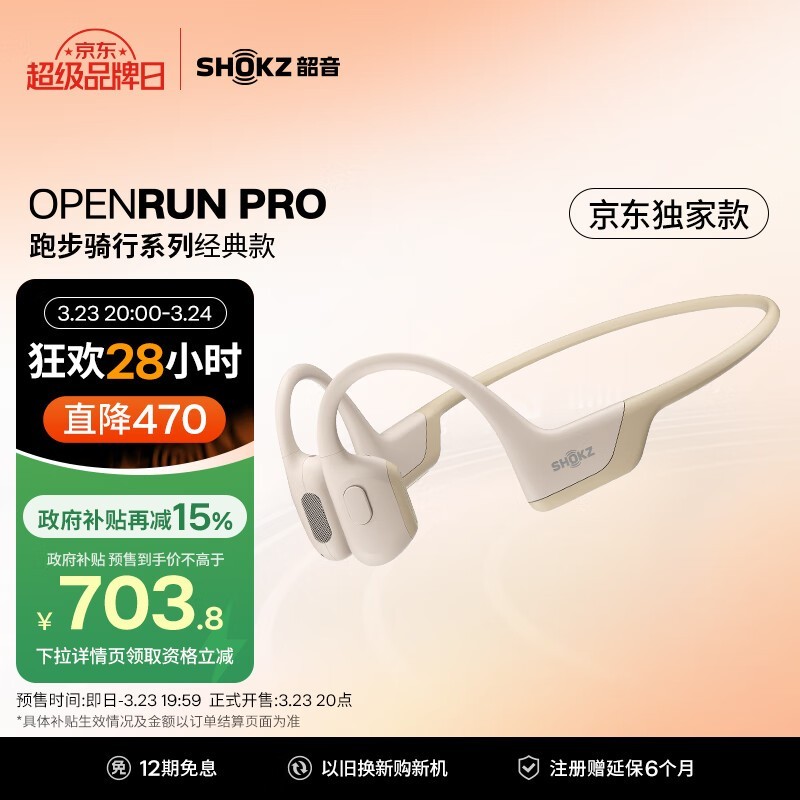 韶音OpenRun Pro骨传导蓝牙耳机沙漠黄款运动更安全