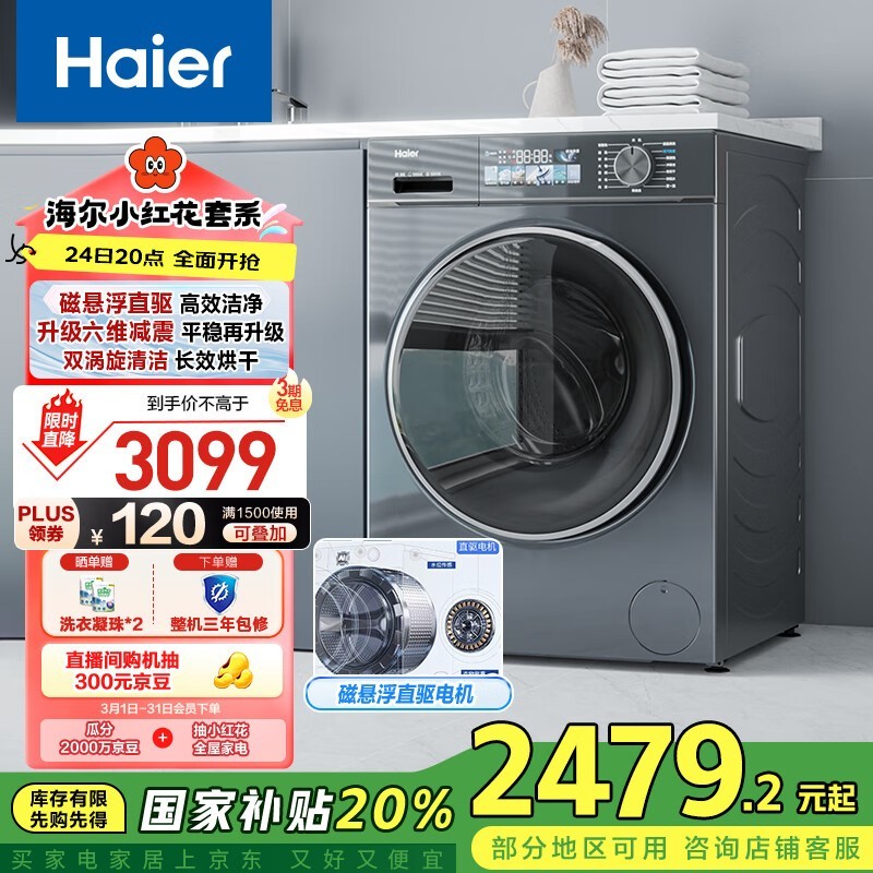 海尔小红花EG100HBD88PLUS洗烘一体机10kg套系超值促销