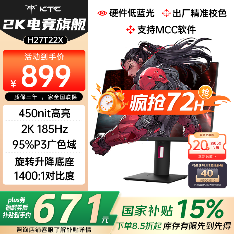 KTC H27T22X 27英寸2K电竞显示器促销信息