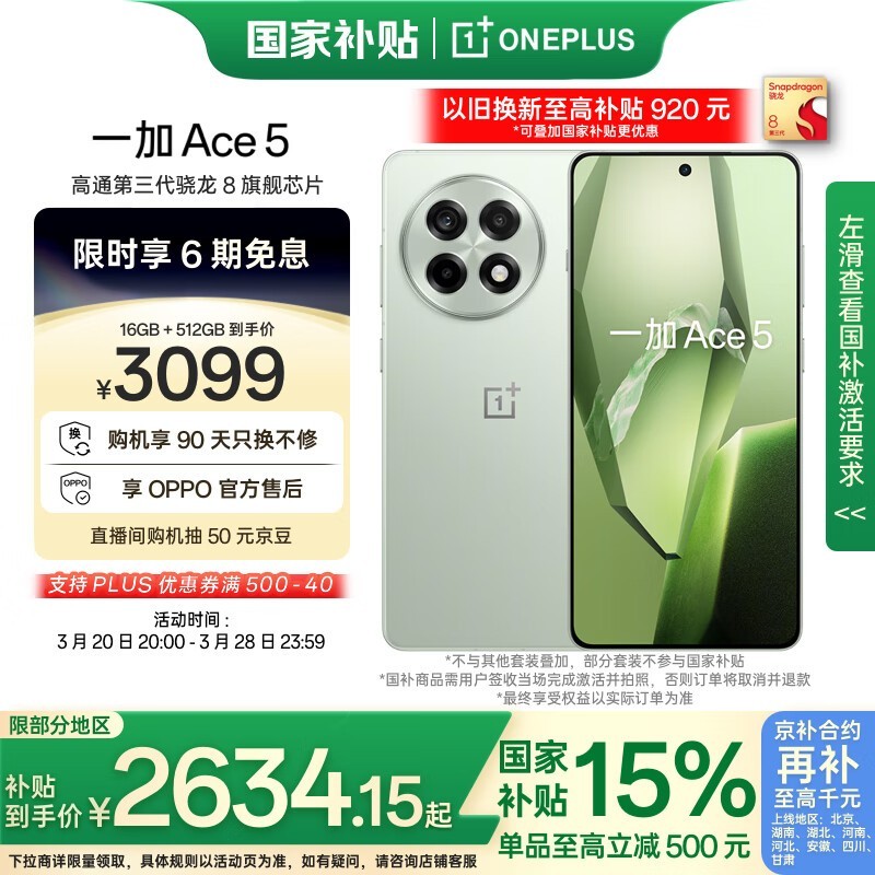 一加Ace5天青瓷特别版16+512G京东特惠仅2468元