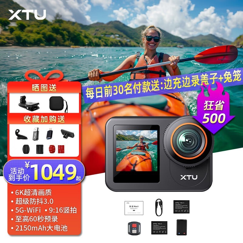 骁途XTU MAX3运动相机6K快拆磁吸防抖双屏摩托车行车记录仪