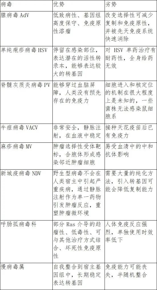 现在常用的有 8 种溶瘤病毒,它们都有各自的优势和劣势: