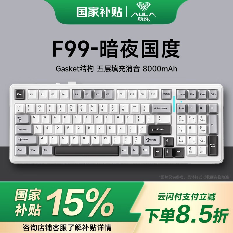 狼蛛F99机械键盘暗夜国度配色三模无线仅204元