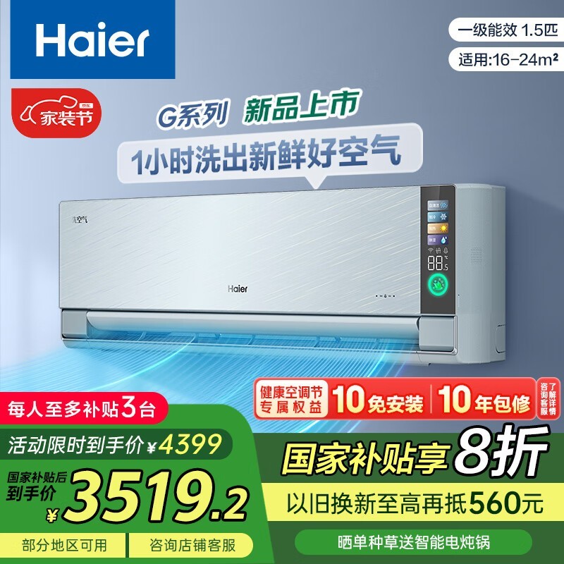 海尔1匹新一级能效空调仅3133元