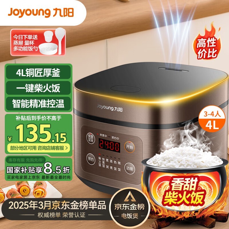 九阳F-40FZ815电饭煲4L大容量摩卡棕外观设计