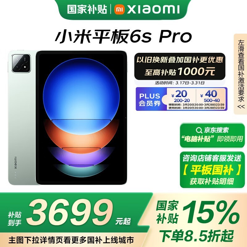 小米Xiaomi Pad 6S Pro平板电脑京东特惠3638元