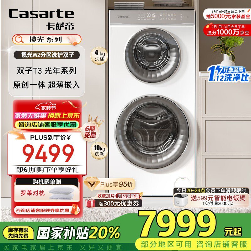 卡萨帝双子分区洗衣机14kg大容量静音洗