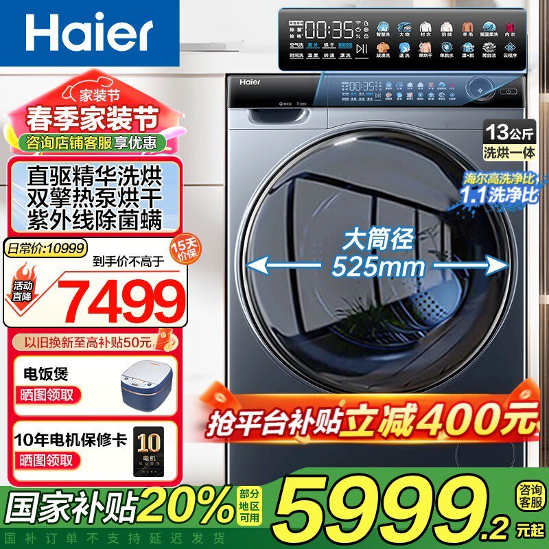 海尔XHG13L96U1洗烘一体机13KG大容量热泵式精华洗促销