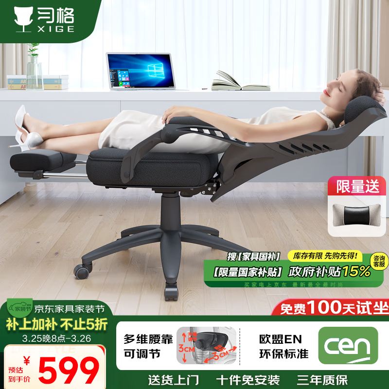 习格电脑椅黑框黑网款京东活动价599元享舒适体验
