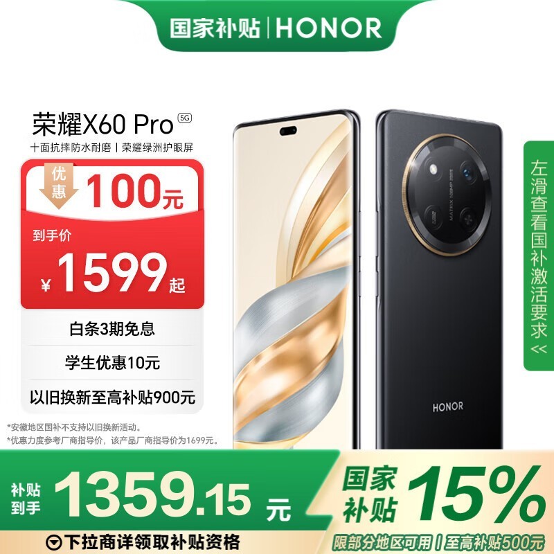 荣耀X60 Pro旗舰5G手机,120Hz护眼屏仅1257元