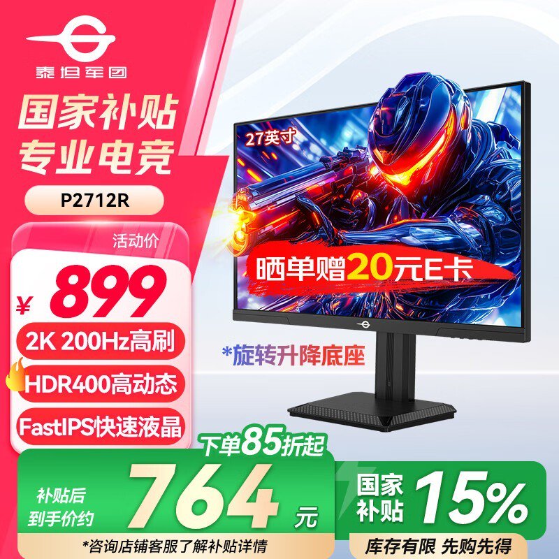 泰坦军团P2712R电竞显示器2K分辨率200Hz刷新率促销
