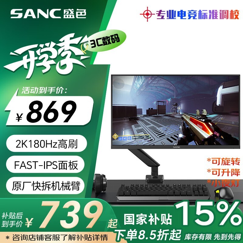 SANC G52Plus机械臂版显示器23英寸2K 180Hz仅700元