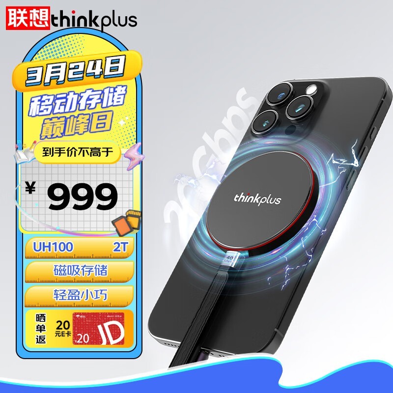 thinkplus联想2TB磁吸移动固态硬盘UH100系列极速传输