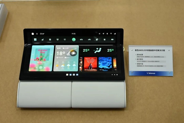 畅想类智慧出行应用包括柔性AMOLED车载智能透光表皮、车载曲面中控、车载双联屏中控显示及AMOLED透明一体机技术,将为用户带来更科技、更舒适、更安全的驾乘体验。