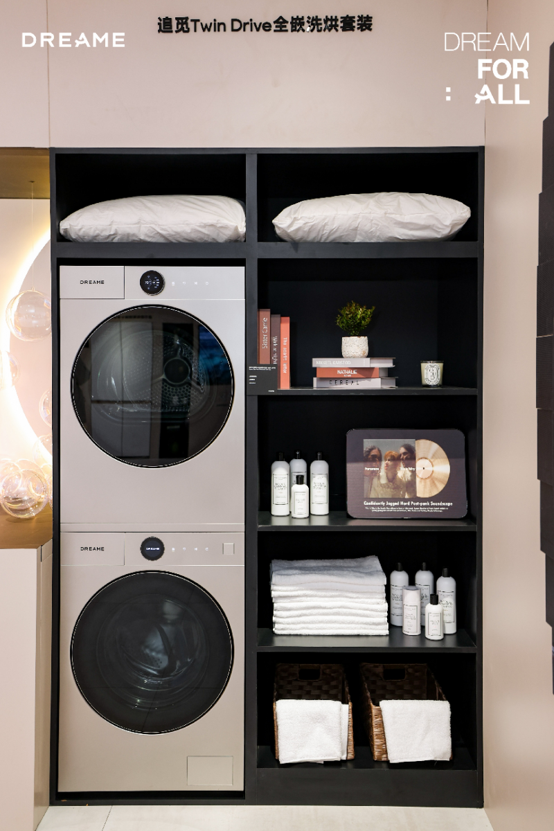 在消费者最关注的在家居洗护场景,追觅科技展出全球首款搭载DD电机驱动的干衣机,摒弃皮带设计,从根源上消除传统皮带结构产生的噪音。电机与滚筒直连,释放更多内部空间,为热交换系统升级创造条件,革新了干衣机使用体验。