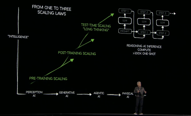 面对DeepSeek带来的冲击,黄仁勋先是在演讲中做出回答:“全世界都错了,Scaling law有更强的韧性,现在的计算量是去年同期的100倍。”