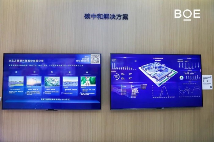 在智慧能源场景,京东方能源带来零碳综合能源解决方案,以BES智慧能源管理平台为基础,围绕“源-网-荷-储-碳”各环节,在工业、商业、园区、公共设施等典型用能场景下,通过“源头脱碳-过程减碳-末端负碳-智慧管碳”的零碳实施路径,提供新能源/储能投建运营、电力现货交易、节能技改/能源托管、碳咨询/交易等一站式零碳解决方案,助力社会绿色发展和生态文明建设。