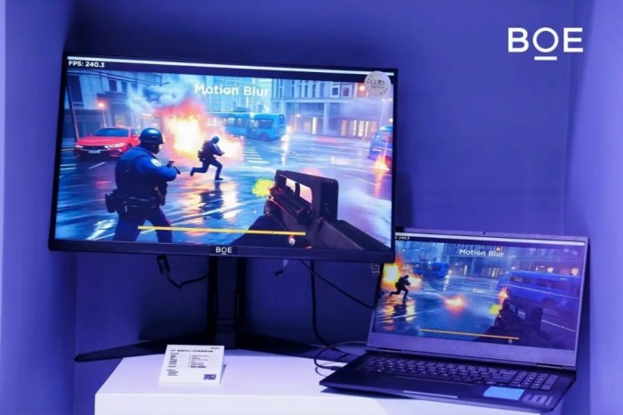 MLED展区内,27英寸极速Mini LED电竞显示器以超快响应速度成为众人瞩目,该产品采用玻璃基、高分区Mini LED工艺,搭配动态BFI算法,可实现超短动态响应时间,大幅消除运动画面模糊拖影现象,提升高速运动画面清晰度,满足电竞玩家对游戏画面的极致追求。