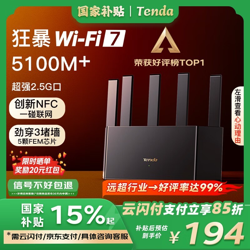 腾达BE5100 BE6L Pro WiFi7路由器仅141元