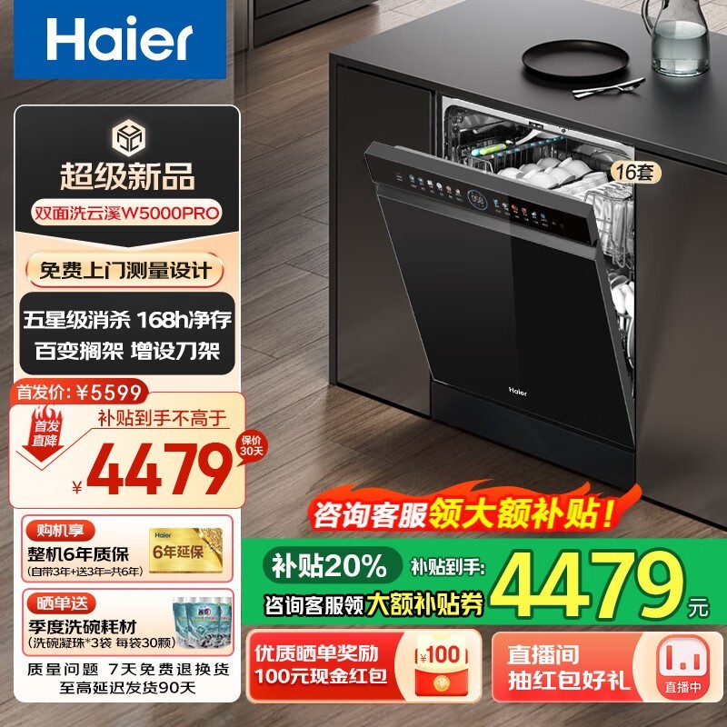 海尔Haier W5000Pro嵌入式洗碗机大容量节能环保促销