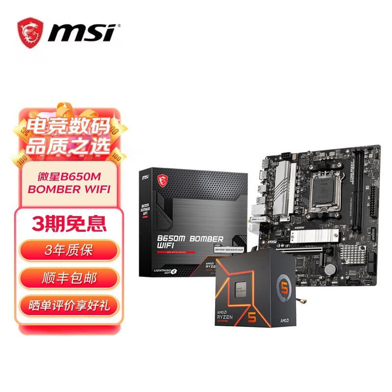 微星B650M主板+BOMBER WIFI R7 9700X散片套装促销