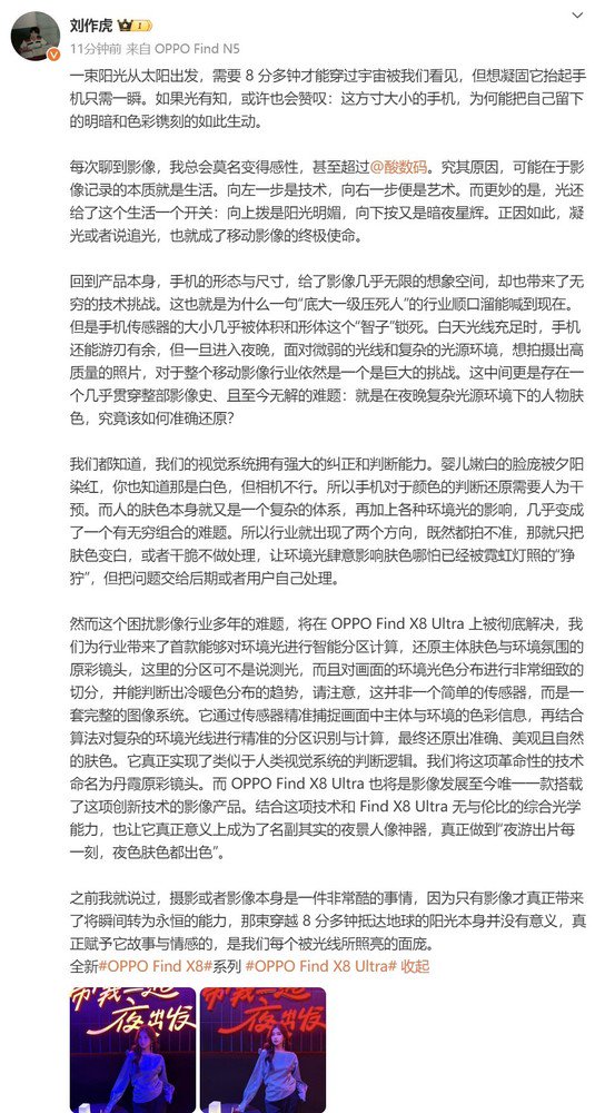 刘作虎:OPPO Find X8 Ultra将首发搭载丹霞原彩镜头