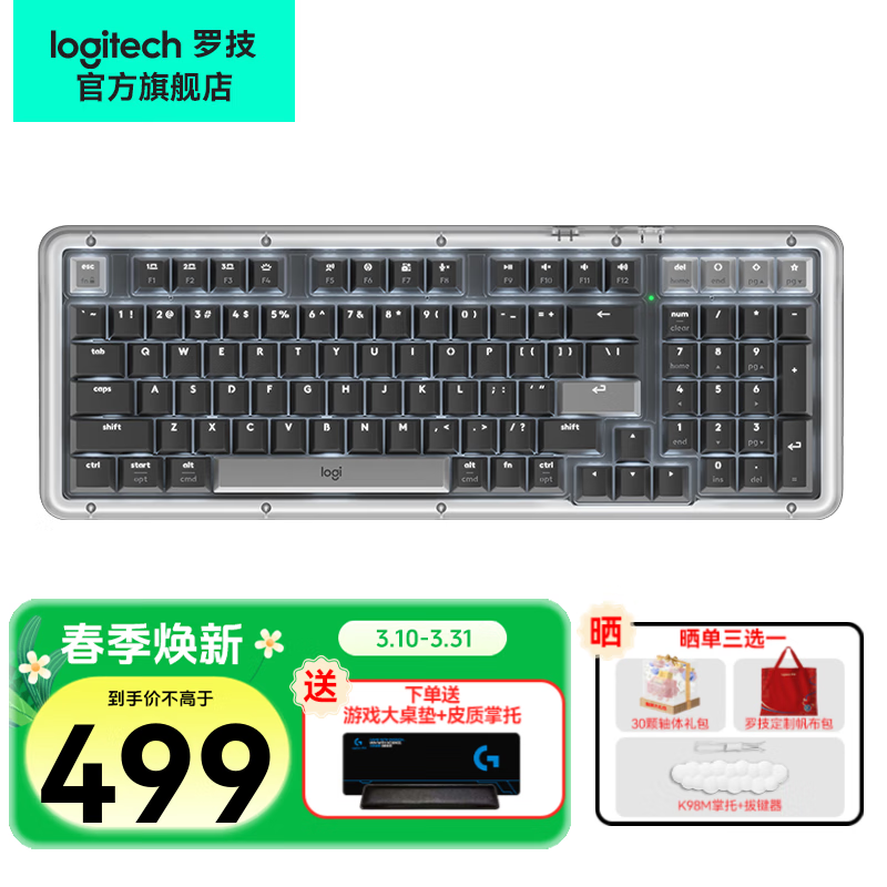 罗技Logitech琥珀系列K98M机械键盘三模连接大理石轴